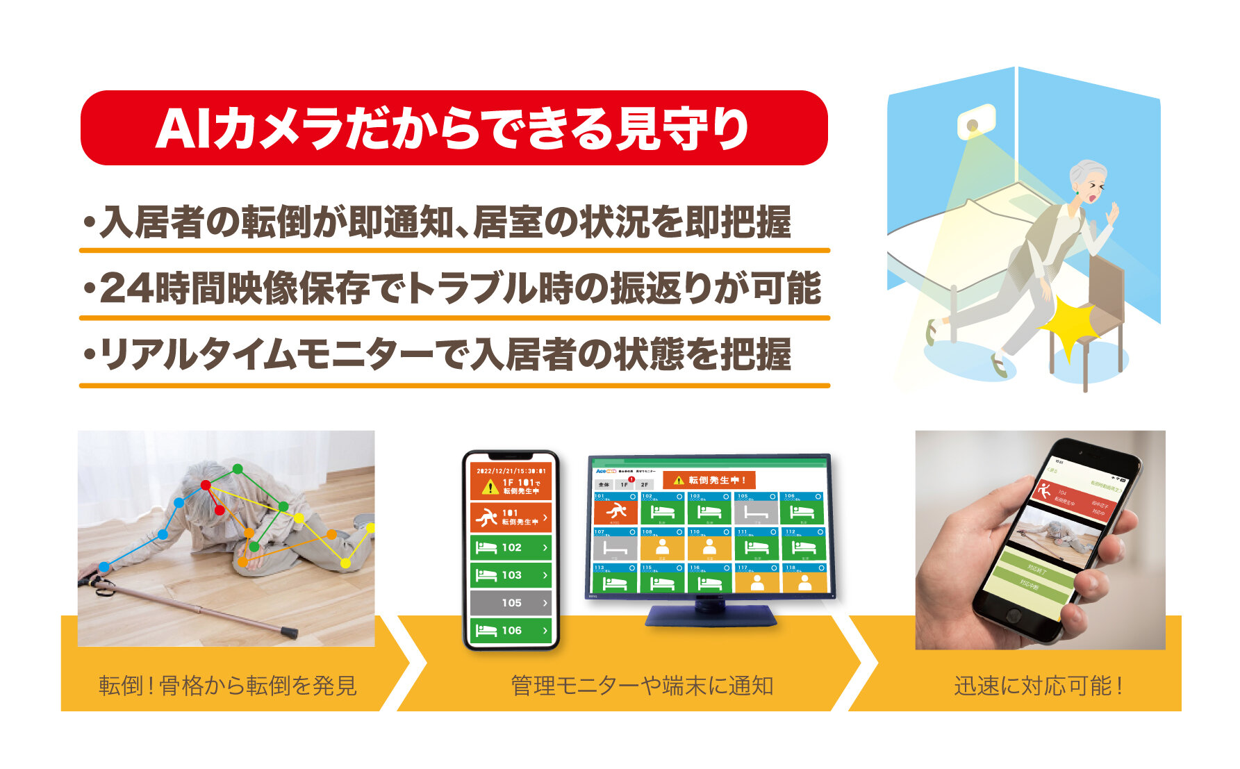 AIカメラで入居型介護施設の居室や共用部の見守りをサポート