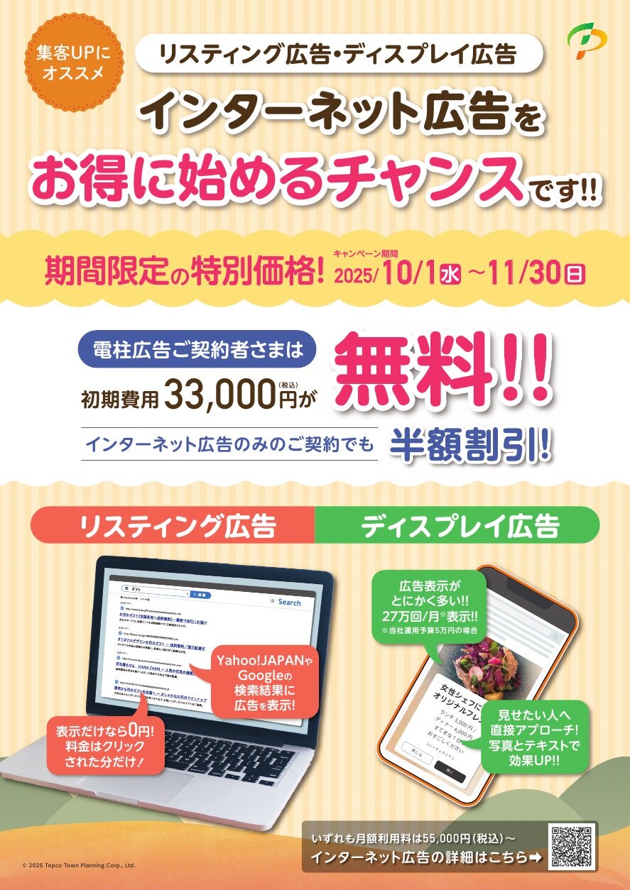 2025年10月1日より電柱広告とインターネット広告を対象としたキャンペーンが実施中です。