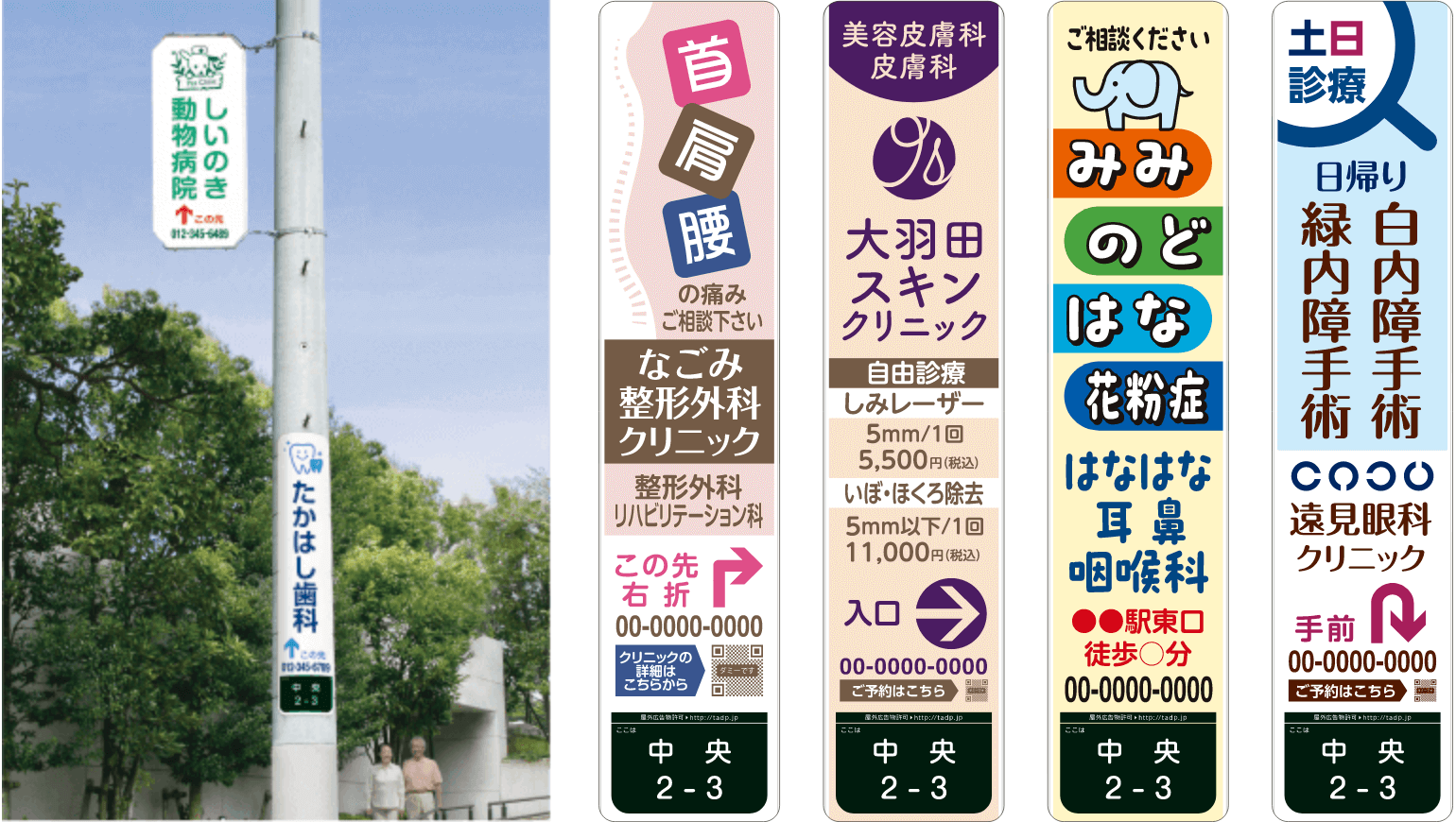 電柱広告は、地域に根差した形で信頼感を醸成し、集患を下支えする広告手法です。地域密着型の「認知」施策として、ぜひご検討ください。