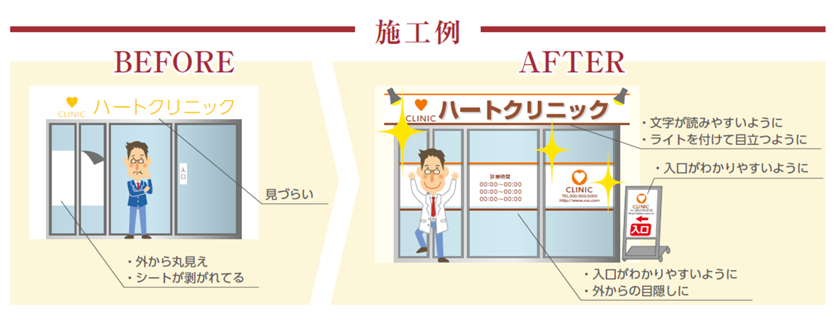 また、医療法の範囲内でクリニックが対象とする診療内容を看板面に明記できるため、来院前から「自分に合ったクリニックである」という安心感を与える効果も期待できます。