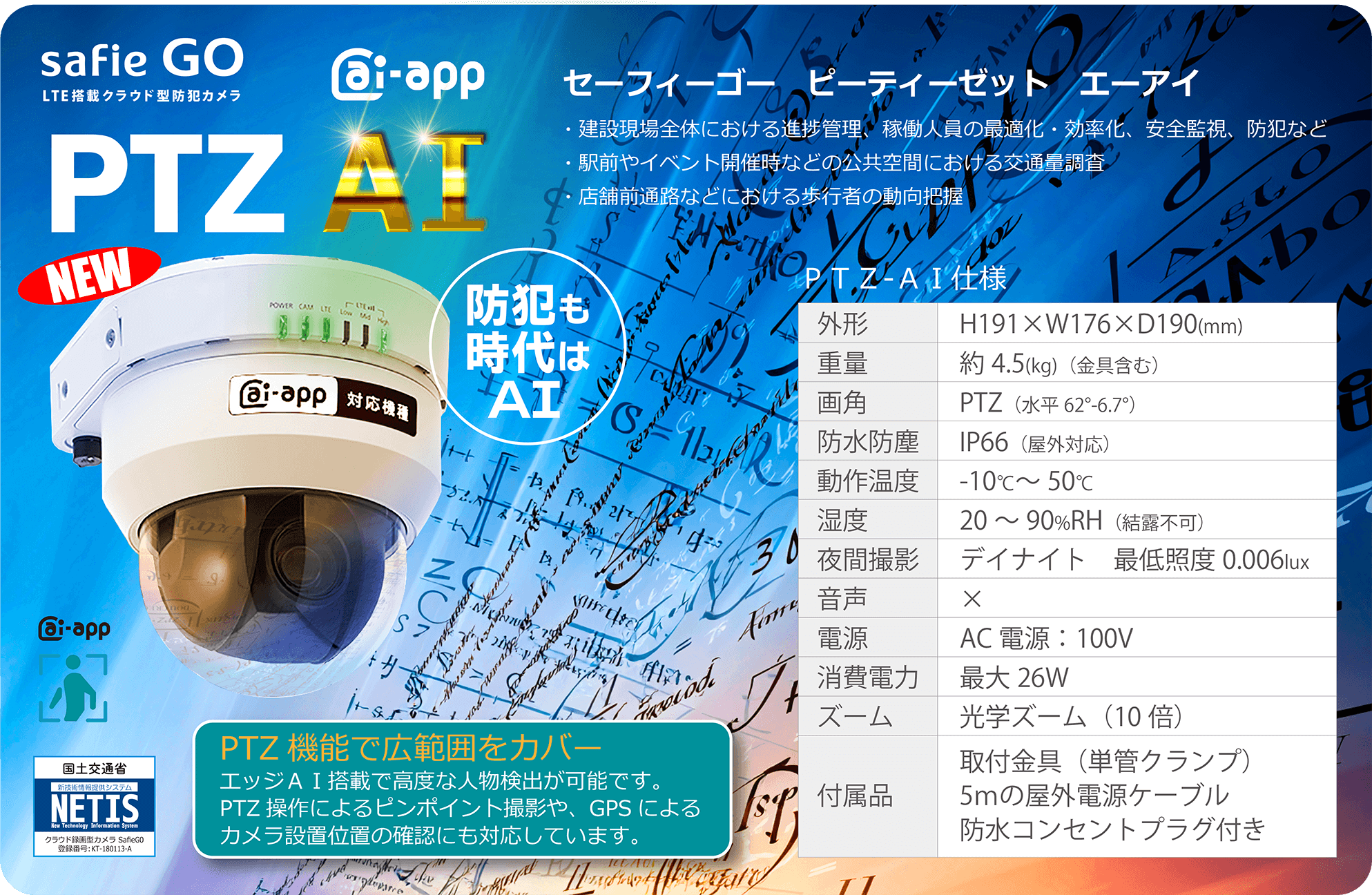 現場ですぐにご使用いただけます。 - 24時間いつでもどこでも利用可能!24時間録画できます。PCやスマホ等で、リアルタイムに映像を見ることも可能です。