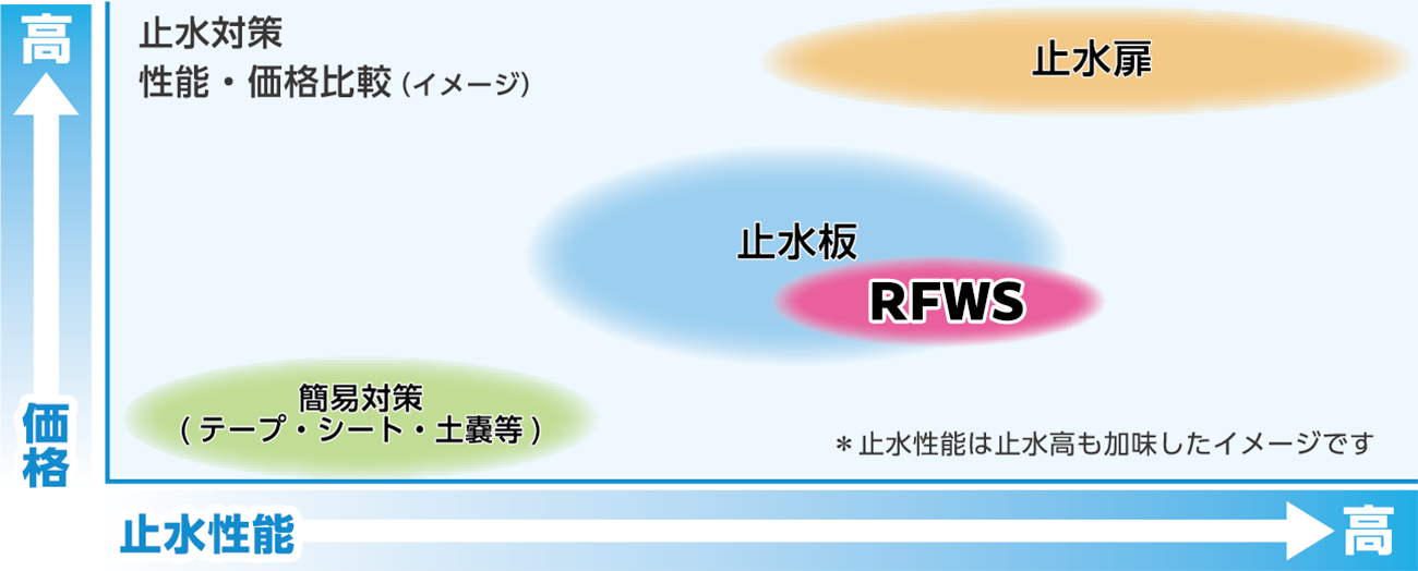 *JIS A 4716 浸水防止用設備建具型構成部材にて規定される漏水量による等級