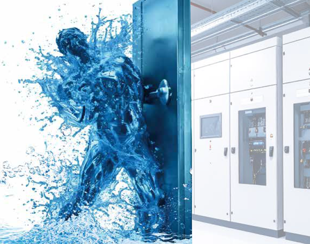 例えば、広さ5m×5m、開口幅(ドア)0.8mの電気設備室、外部の浸水深最大2m、24時間後に水が引けた場合、3cm程度の漏水と試算しています。